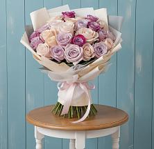Если вы ищите букет для молодой девушки, маленькой девочки или же хотите рассказать о нежных чувствах своей возлюбленной, то букет «Фея» будет как нельзя кстати. Гармоничное, легкое и потрясающе-нежное сочетание лиловых, розовых и персиковых роз, сиреневых хризантем и веточек писташ подарит настоящее волшебство и моменты счастья дорогому Вам человеку.